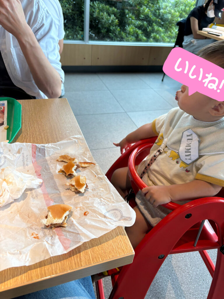この間、急遽マクドナルドに行った時、いつもなら離乳食のお弁当(レトルト)を食べさせるけれど、手持ちがなかったからハッピーセットデビューしちゃいました🙌選んだのはハンバーガー、枝豆コーン、リンゴジュース。レジで注文すればケチャップとピクルス無しをお願いできるけれど、バタバタしていてアプリ注文をしてしまったから、ケチャップとピクルスは後で抜く方式。とはいっても、ケチャップがバンズにしっかりついていたー😣やっぱり次回からはレジでピクルスとケチャップ抜きを注文しようと思う。ハンバーガーは初めてだったけど、ちぎってあげたらバクバク食べてあっと言う間に完食!(長女はまだハンバーガーを食べてくれず、いつもチキンナゲットです💦)枝豆コーンはどうだろう、、食べてくれないかなぁ。と心配していたけれど、これもめちゃめちゃこぼしながらガツガツ完食😳四方八方に飛んでいたから拾うのが大変だった、、😅枝豆コーンでお腹が膨れたのかこの二つでほぼ満足してくれました。それにしても本当なんでも食べるなぁ。。でもコレからはマックドナルドに気軽に行ける🙌